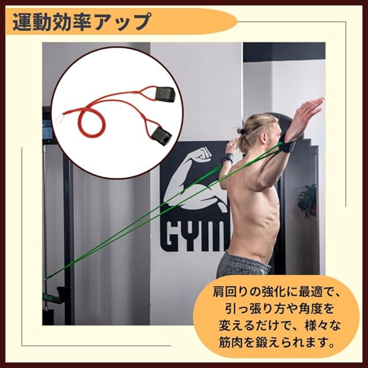 【運動効率アップ】肩周りの強化に最適で、引っ張り方や角度を変えるだけで、様々な筋肉を鍛えられます。