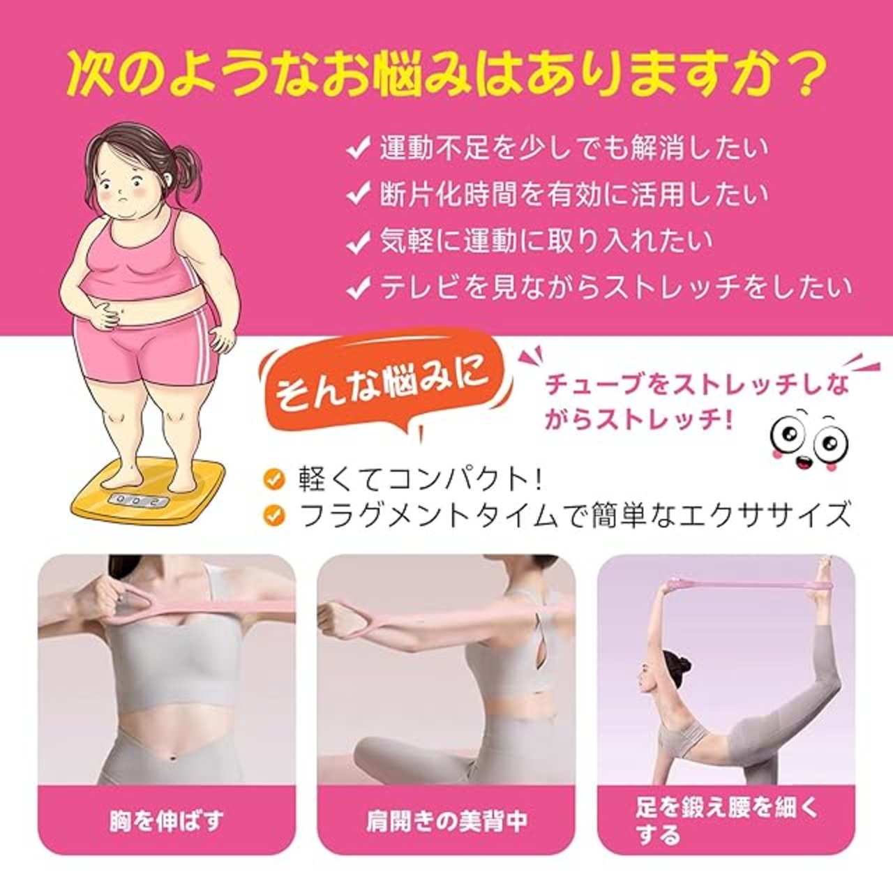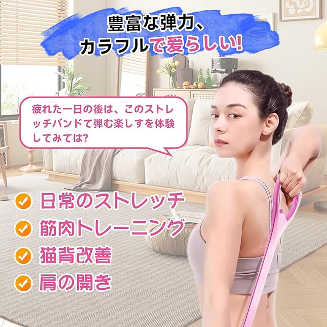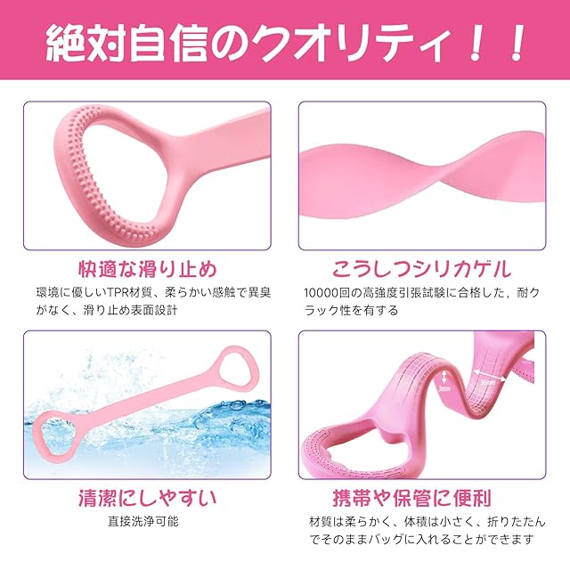 商品名:RUREO ゴムバンド、フィットネスバンド、フィットネスチューブ、肩こり防止、肩甲骨、背筋トレーニング、筋トレ、シェイプアップ、痩身、柔軟なTPR素材、超高弾性、滑りにくい、洗える、肩こり防止、姿勢矯正、筋力強化、猫背矯正、自宅で。 (ピンク)