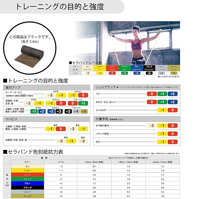 商品名:セラバンド(THERABAND) トレーニングチューブ バンドタイプ 2m TBB-5 ブラック 強度レベル+3