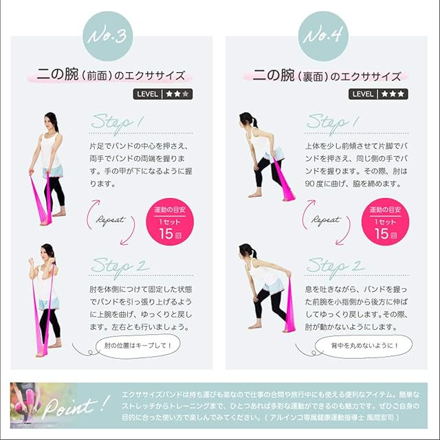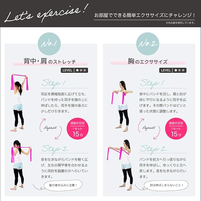 両手でバンドを握ったり、足にかバンドを掛けて運動したりといろんなシチュエーションで使える。