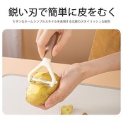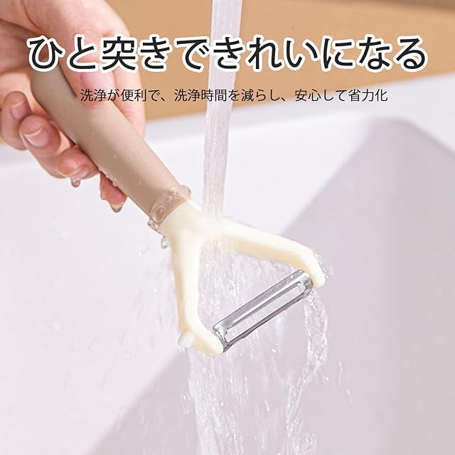 【高品質材料】PPとステンレス材質を使用して製造し、刃物部分は高品質ステンレスを採用し、錆びにくい。ハンドル部分にPP素材を採用し、手触りが快適で高級感があります。<br>【複数の果物や野菜に簡単に対応可能】カッターには丸い果物や野菜に適したY字型、長い果物や野菜に適したI字型があります。ハード果物にも対応しており、ギザギザの刃を選んで対応しやすい。<br>【シンプルスタイル】ハンドル部分にナチュラルカラーを採用し、スクレーパ棒とキッチン家具を一体化させ、スタイリッシュなデザインにしています。<br>【簡単で実用的】果物や野菜の薄皮を簡単に取り除くことができるこのベジタブルピーラーは、信頼できるキッチンツールです。<br>【使い勝手】1つのツールで様々な果物や野菜を合理化できます。ステンレス切断とテーパエッジ設計で、軽量で耐久性があり、あらゆるはく離ニーズに適しています。