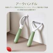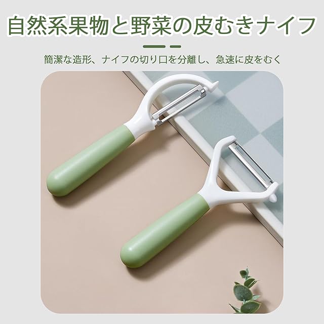 【高品質材料】PPとステンレス材質を使用して製造し、刃物部分は高品質ステンレスを採用し、錆びにくい。ハンドル部分にPP素材を採用し、手触りが快適で高級感があります。<br>【複数の果物や野菜に簡単に対応可能】カッターには丸い果物や野菜に適したY字型、長い果物や野菜に適したI字型があります。ハード果物にも対応しており、ギザギザの刃を選んで対応しやすい。<br>【シンプルスタイル】ハンドル部分にナチュラルカラーを採用し、スクレーパ棒とキッチン家具を一体化させ、スタイリッシュなデザインにしています。<br>【簡単で実用的】果物や野菜の薄皮を簡単に取り除くことができるこのベジタブルピーラーは、信頼できるキッチンツールです。<br>【使い勝手】1つのツールで様々な果物や野菜を合理化できます。ステンレス切断とテーパエッジ設計で、軽量で耐久性があり、あらゆるはく離ニーズに適しています。