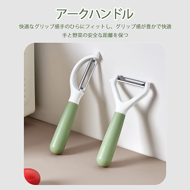 商品名:Akkerds 皮むき器 T字タイプ 軽く鋭い使い心地 持ちやすい ステンレス グリーン