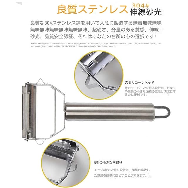 【高品質ステンレス】:304ステンレス製で、耐久性があり、食材の剥き作業を簡単に行えます。