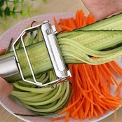 【多機能ピーラー】:7.2cm幅の切り上げ刃で、果物やジャガイモ、西葫芦などさまざまな食材をスムーズに剥けます。