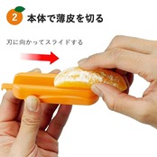商品名:下村企販 ピーラー みかん剥き ムッキーちゃん 【日本製】 きれいにむける スムーズ 薄皮もむける 時短 コンパクト 甘夏 はっさく 蜜柑 オレンジ 皮剥き器 樹脂製 燕三条 15882