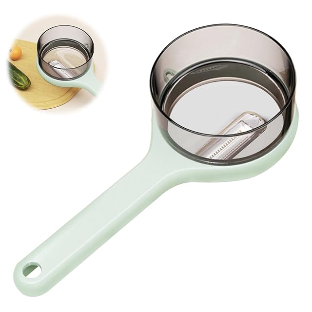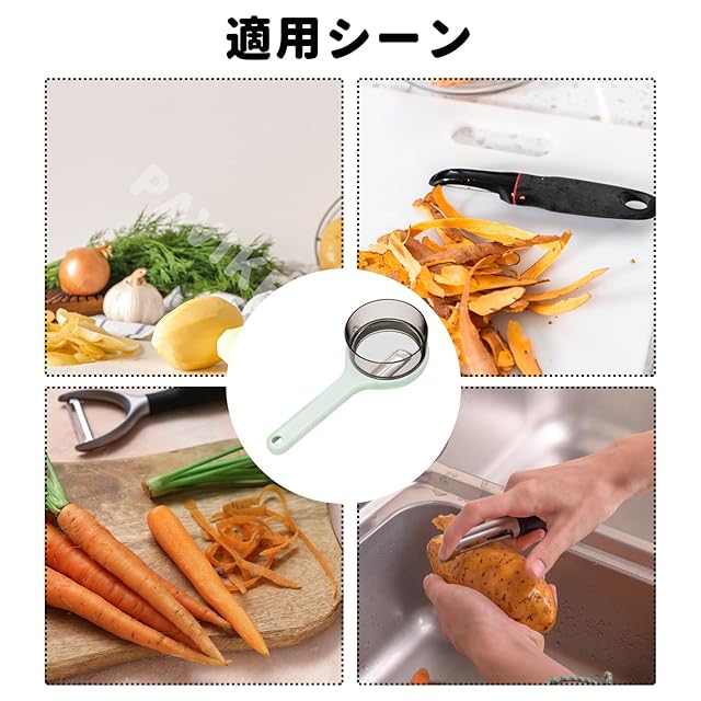 【収納ケース付き】皮を収納のケースが付いているので、皮を剥くときに周囲に飛び散りません。剥いた皮は直接に収納ケースに入れており、皮を剥いた後は、飛び散るの皮を片付けることはなく、収納ケースにある皮をゴミ箱に捨てればいいです。皮むきより簡単に、楽になります。