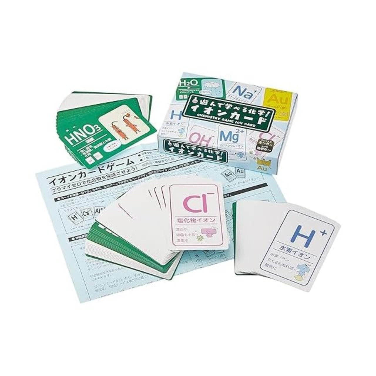 化学の世界を楽しく学べるイオンカードゲームです。8種類の陽イオンカードと9種類の陰イオンカードを組み合わせて、様々な化合物を作ることができます。例えば、私たちの生活に欠かせない塩(塩化ナトリウム)は、Na⁺とCl⁻のカードを組み合わせることで完成します。 学校の先生たちが考案したこの教材は、化学の知識がなくても楽しみながら自然と興味が持てるように設計されています。イラストレーターの「うえたに夫婦」が描いたかわいいキャラクターが、イオンを親しみやすく表現しています。カードゲームを通じて、化学結合の基本概念を楽しく習得できます。 教室での授業用教材としてはもちろん、家庭での自主学習にも最適です。 (本製品は、奥野かるた店(Okuno Karuta-ten)で販売されていました。)
