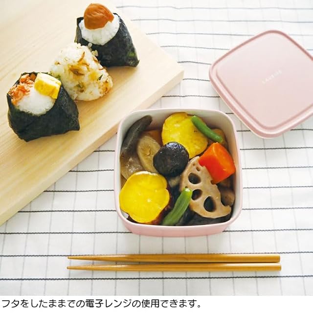 一辺が約10cmの小さな正方形のお弁当箱。 お弁当のおかずやカットフルーツなどを入れるのに ちょうど良いサイズ感です。 別売りの「スクエアランチバッグ」に こちらのランチボックスが2個ぴったり入ります。 フタをしたままでの電子レンジの使用が可能です。 本体表面はつや消しの塗装仕上げ。 フタの裏面にはシリコンパッキンがついており、密閉性も高いです。
