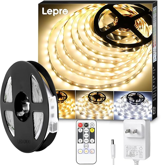 商品名:Lepro LED テープライト 10m ledテープ 電球色・昼光色・昼白色 調光調色 明るさ調整 間接照明 リモコン付き イルミネーションライト 3pin 2835SMD 取付簡単 非防水 店舗 室内 ホーム装飾用 DIY ledテープライト