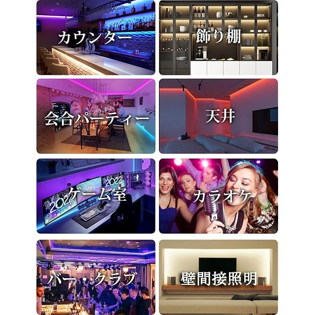 【省エネ・室内多用途】家庭用間接照明、部屋、廊下、壁、天井、階段、玄関に応用出来ます。看板照明、壁美化、バークラブ、居酒屋、飲食店、祝日クリスマス装飾、パーティー気分盛り上がりなどにも幅広い活躍出来ます。*本LEDライトは非防水室内用