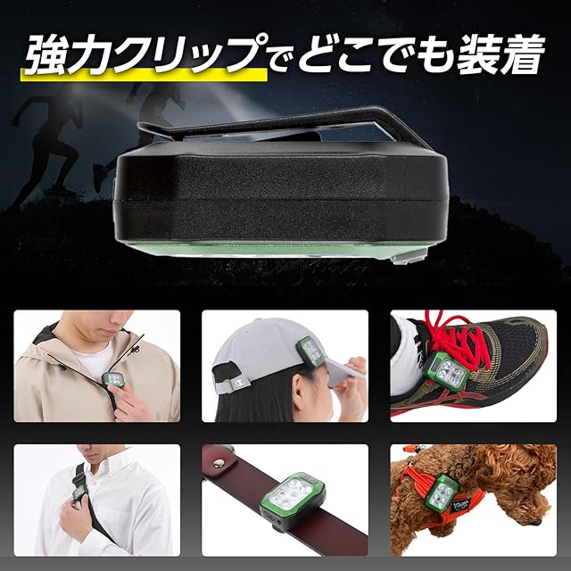 【強力クリップ・生活防水】強力なクリップでどこにでも取り付けられます。胸元でネックライトとして使用するのはもちろん、ベルト、帽子、バッグ、ペットの首輪、自転車などにも取り付け可能です。夜間のジョギングや散歩だけでなく、夜間の作業やキャンプにも便利です。IPX4の生活防水なので、汗や突然の雨でも安心です。