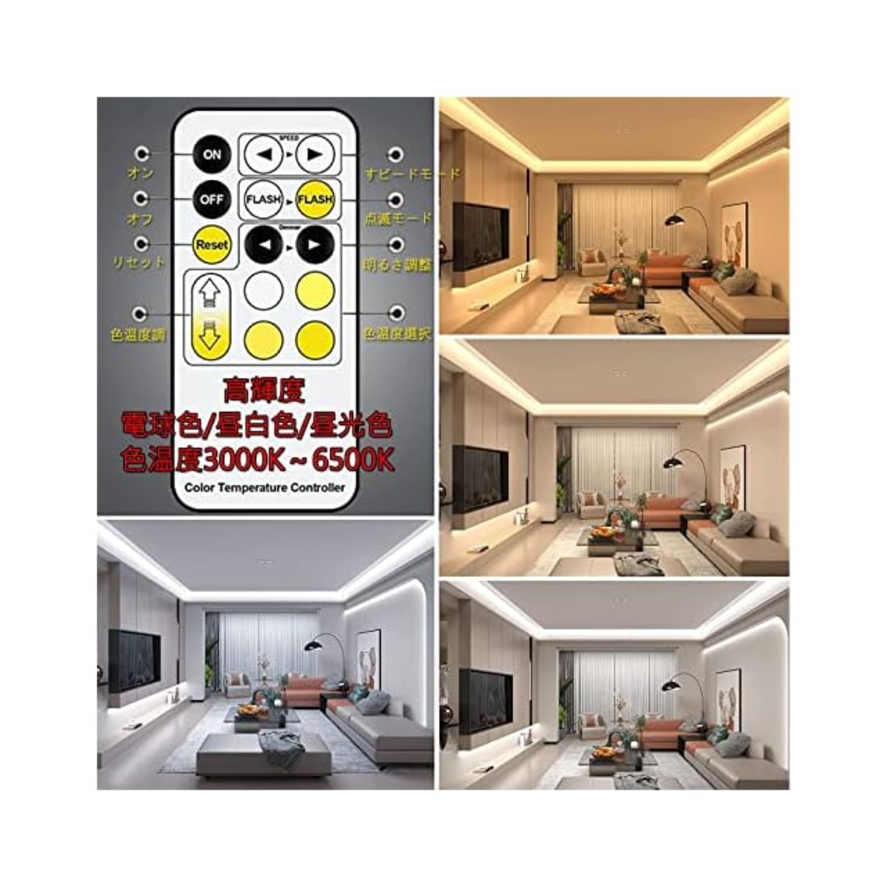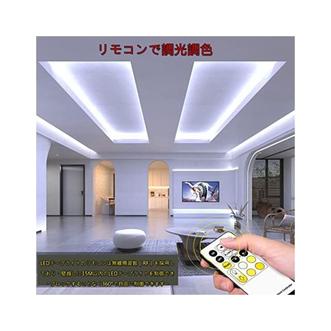 【リモコンで調光調色】赤外線リモコンや調光スイッチよりも実用的で便利です。子供でも簡単操作が可能なLEDテープライト。