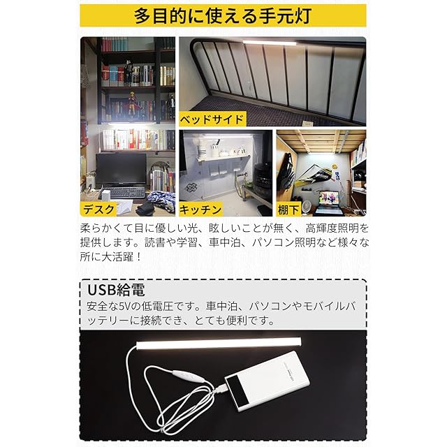 【USB給電式・省エネ】5Vの低電圧供給で、車中泊、パソコン、モバイルバッテリー、USBアダプターなど接続でき、とても便利です。停電時には、モバイルバッテリーに接続、防災用照明器具としての使用に最適です。消費電力は僅か5Wでありながら、従来の蛍光灯に比べて消費電力が少なく、電気代が約60%節約できます。