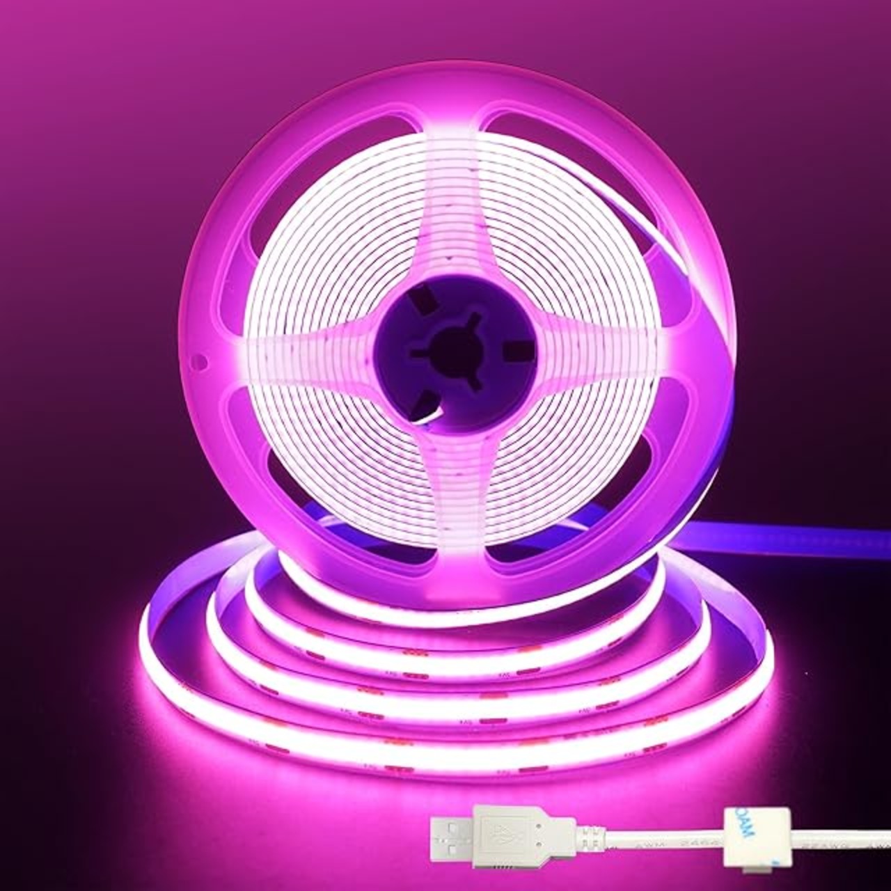 クリアヒル(Clearhill)5V COB LEDストリップライト 1個 2M ピンク 320LED/m 3.5W/m 幅8mm 非防水IP20 1M USBスイッチケーブル 22AWG DIY 家庭のインテリア用