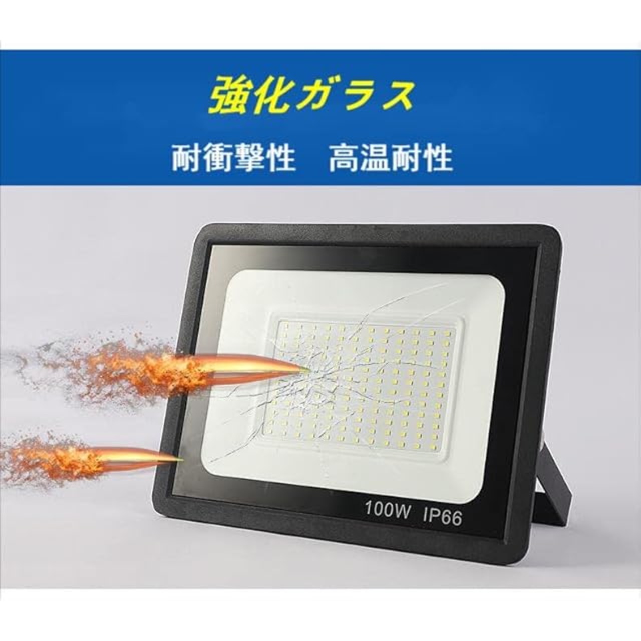 商品名:IP66防水 LED 投光器 作業灯 100V/200V 85-265V対応 100W 15000LM フラッドライト 省エネ 高輝度 アース付きプラグ PSE適合 1.8Mコード ワークライト 駐車場灯 看板灯 工場 倉庫照明 体育館 ガレージライト 街路灯 昼光色 屋内 屋外兼用 (1個)
