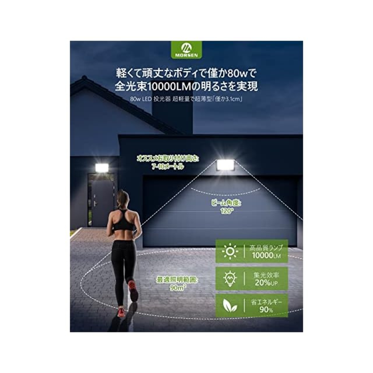商品名:MORSEN 投光器 80W 4セット led投光器 10000ML 6500K 極薄型 投光器屋外 100v 灯光器 作業灯 外灯 工事用ライト ledライト 屋外用 野外 防水 看板灯 集魚灯 駐車場用