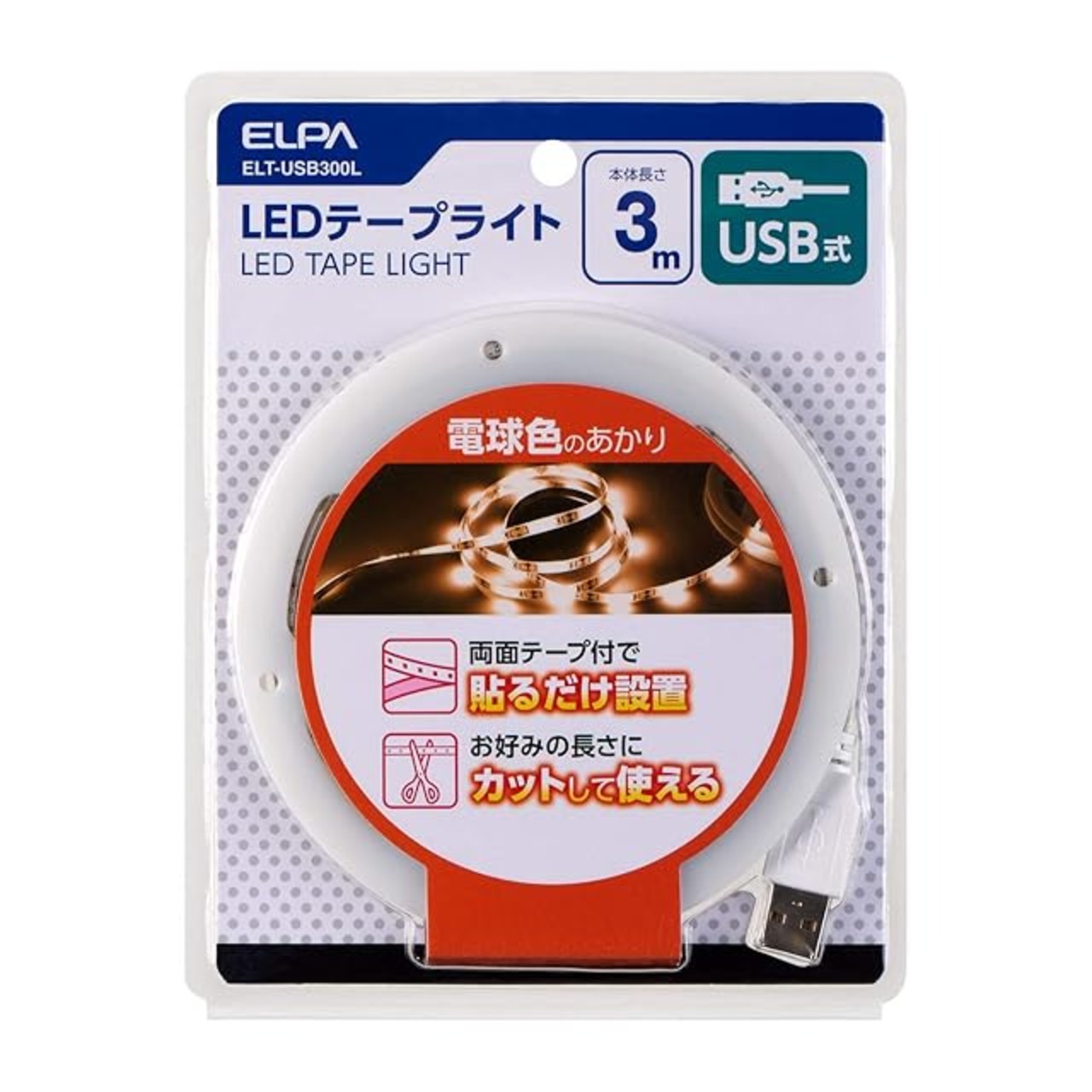 商品名:エルパ (ELPA) LEDテープライト 照明 USB式 350lm 約4m(テープライト部 3m) ELT-USB300L