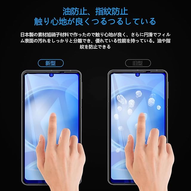 【指紋防止、疎油性、撥水】ガラスフィルム表面は疎油、撥水処理されて、液体が付着しにくいコーティングで、指に付着した汚れなどがガラスフィルムにつきにくく、拭き残しがなくて、スクリーンがいつでもきれいです。