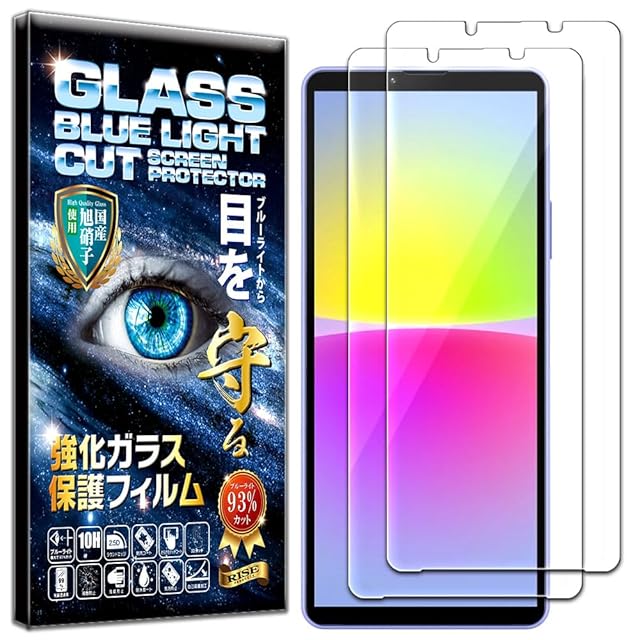 <p>アフターフォローアフターサポートも安心の<br> 日本法人 RISE PRODUCTS ブランド<br> 硬度10H 第3世代 W硬化製法(二次強化)済 <br> 国産AGCガラスを使用したブルーライトカットガラスフィルム 。<br> お得なガラスフィルム2枚セット 。<br> <br> ※ご注意ください ブルーライトカットガラスは太陽光の下では青く反射します、 その為、使う方によっては画面が見えずらい場合がございます。 日中太陽光が当たる屋外での使用頻度が多い場合は ブルーライトカットタイプではなくクリアタイプをお勧めします。<br> <br> ■対応機種:Xperia 10 VISO-52E/SOG14/SoftBank/XQ-ES44/Xperia 10 V SO-52D / SOG11<br> <br> 【製品仕様】<br> <br> ■安心の日本製素材 国産AGCガラスを使用。<br> <br> ■ブルーライトを93%カットする素材を使用。<br> <br> ■第3世代製法の最新技術のW硬化製法(2次強化)ガラスで耐衝撃性を強化。<br> <br> ■ガラス表面に400度の高温処理を6時間かけた強力コーティングを実現。<br> <br> ■フィルムが破損しても飛散防止加工で液晶画面を徹底保護。<br> <br> ■第3世代製法の最新技術のW硬化製法(2次強化)ガラスで対擦傷性を強化。<br> <br> ■透過率99%で液晶の鮮やかな画面をそのまま表現。<br> <br> ■耐指紋軽減加工により、汚れてもさっとふき取るだけで元どうりに。<br> <br> ■撥油撥水コーティングで汚れを弾き、長期間のコーティングを維持。<br> <br> ■気泡ゼロ、フィルムを位置に合わせておくだけであっという間に自動で吸着。<br> <br> ■柔軟性のある3Dシリコンが快適なタッチ感度を提供。<br> <br> ■5層のフィルム設計で強度のある0.33mmのガラスに仕上げました。<br> <br> ■充実した付属品、専用動画で簡単貼り付けが可能。<br> <br> ■万が一貼り付けに失敗しても安心のお届け後15日間の貼り付け付き。<br> <br> ■内容品<br> <br> ガラスフィルム ×2、ウェットワイプ×2、ドライワイプ×2、埃吸着シート×2、クリーニングクロスx2、貼付説明書付属。<br> <br>