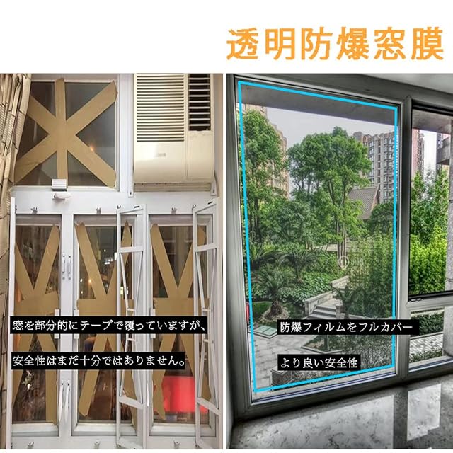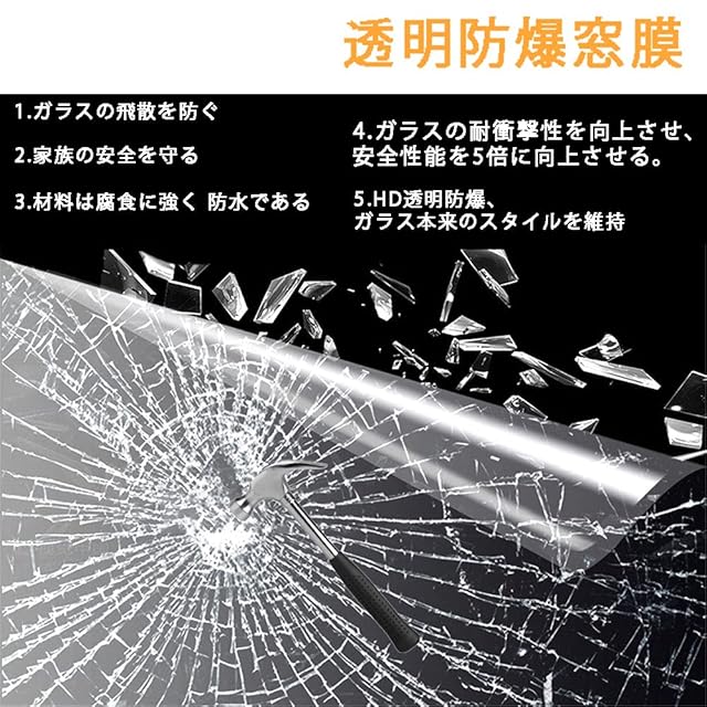 【透明度が高い】多くの膜は色があり、視線を遮ることができ、ガラスのデザイン本来のスタイルを変えることができます。この透明破砕防止フィルムは、従来の設計を乱すことなく、保護機能も提供しています。