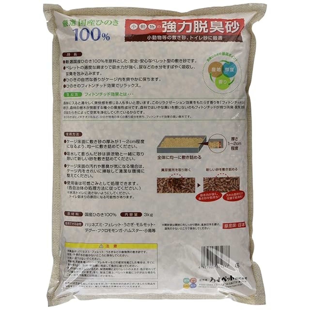 商品名:ハイペット 厳選国産ひのき100% 小動物の強力脱臭砂 3kg