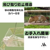 【飛び散り防止構造】砂の飛散を抑えるカバー付きで、激しく砂をかいてもケージ周りを清潔に保ちやすくなっています。