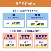 1週間取り替えなしでもニオわない!(※1) ※1●チップ、シートによる不快な尿臭の脱臭効果(愛猫1頭に使用する場合)●ウンチをしたときは早く取り除いてください。