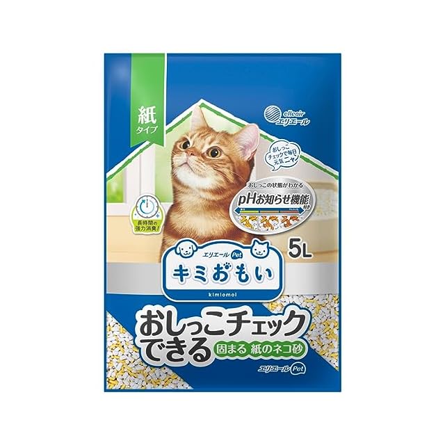 商品名:エリエール Pet エリエールペット キミおもいおしっこチェックできる固まる紙のネコ砂5L