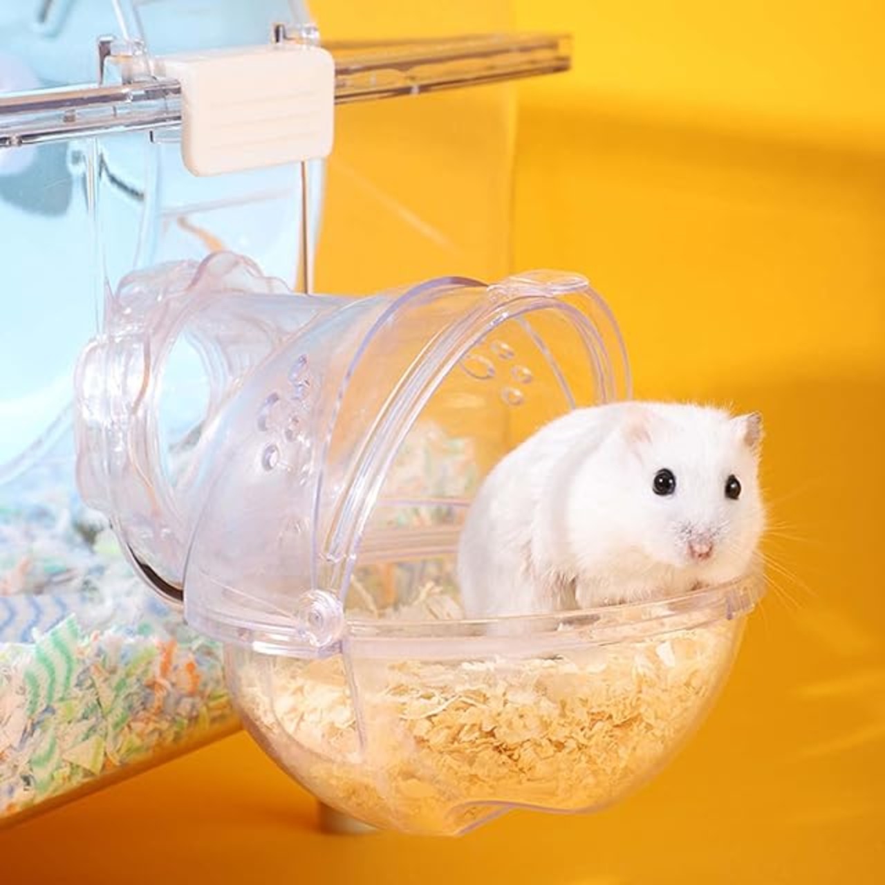 Emoi ハムスター トイレ砂浴び 大きめ ハムスターバスルーム ハムスター ケージ外付け ゴールデンハムスター用 清潔トイレ 砂の部屋 お風呂 洗面所 脱臭 半透明プラスチック製 可愛い チンチラ ハムスター おもちゃ 飛び散り防止 小動物用品 ペット用品 ホワイト