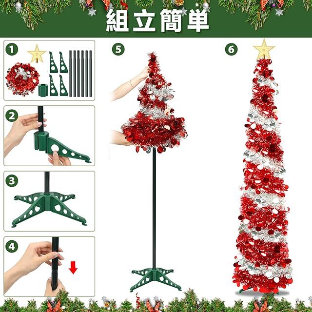 商品名:UHAPEER クリスマスツリー 180cm Christmas tree キラキラ クリスマスツリー レッド/シルバー二色 クリスマスツリー ポップアップ式 折り畳み式 クリスマスツリー おしゃれ 高級 組み立て簡単 日本語取扱説明書 収納便利 クリスマス飾り おしゃれ ファイバーツリー クリスマスパーティー 自宅 お店 インテリア ホテル オフィスインテリア