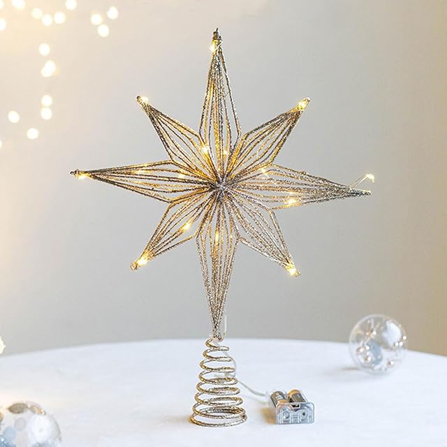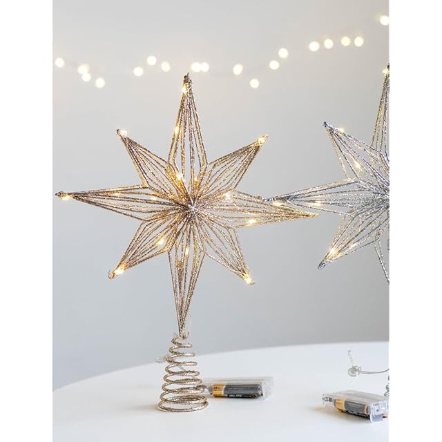 【製品内容】八芒星LEDツリートップライト。ゴールドとシルバーが選べます。きらきら金の粉/銀の粉が幸運の星に散らばって、木の頂星をきらきらさせて、もっと美しくします。(輸送中に振動、押出などの原因により、宅配便を分解する際に閃粉が落ちる可能性があり、正常な現象)