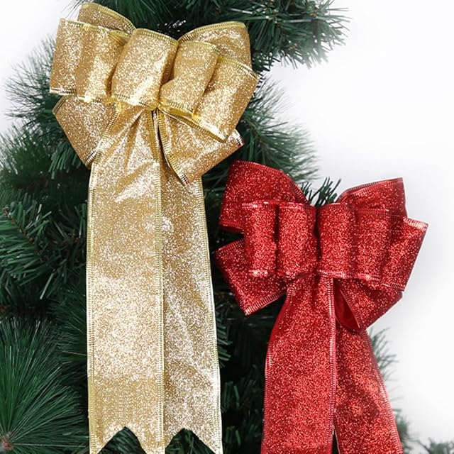 【丁寧に作られた品質】このツリートップ リボンは良質な布とグリッターパウダー素材を使用していますので、長期間にわたって使用することができます。また、軽量で取り扱いも簡単ですので、気軽にどんな場所でもお使いいただけます。お部屋やツリーの雰囲気に合わせてオリジナルなデコレーションを楽しむことができます。