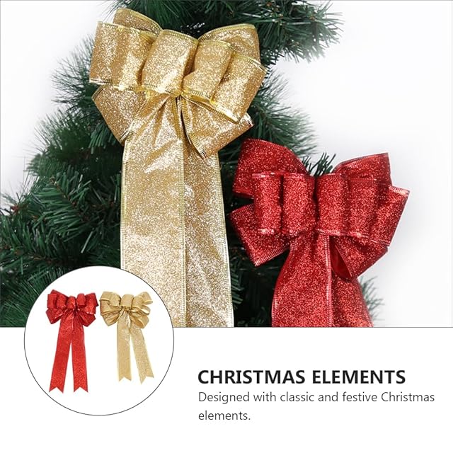 Lurrose クリスマスの弓 ボウツリートッパー クリスマスツリートッパーボウ ノットリボン クリスマスツリートップ ゴールドトリム 大きい 装飾品 赤 ゴールド