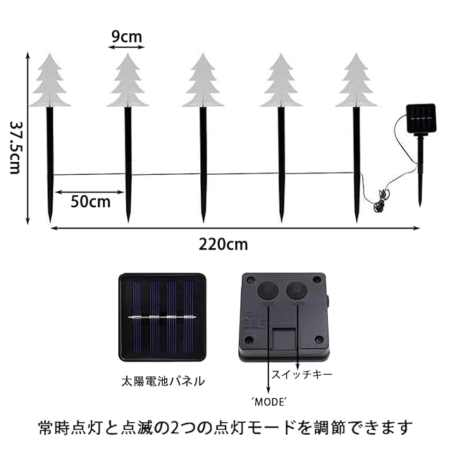 商品名:Lanito クリスマスライト ガーデンライト クリスマス ソーラーライト 暖かい白 5 in 1 クリスマス飾り ランプ 雪の結晶 星 クリスマスツリー 埋め込み式 屋外 防水 自動点灯 消灯 省エネ 照明飾り お庭 雰囲気作り 飾りライト (クリスマスツリー)