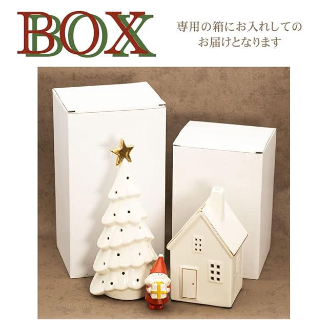隙間から漏れる灯りがきれいなセラミックハウスです。 お部屋をほんのり暗くして、優しい灯りで時間を過ごすのも雰囲気があります。お部屋のインテリアにも最適です。 クリスマスの楽しい時間のお友達にして下さい。あなたやあなたの大切な人の癒しになること間違いなしです。 クリスマスプレゼントにはもちろんのこと自分へのご褒美や大切な方へ感謝の気持ちを伝える贈り物としてご愛用頂下さい。 ホワイトベースなので飾り方は色々。あなたのセンスで楽しんで下さい。 お部屋のテブールや棚に飾るだけでクリスマス感が出ます。クリスマスギフトにもおすすめです! サイズ表記は、代表商品の実寸大となります。採寸は 手作業にて行っております。多少の個体差が生じる場合があります。 1点ずつ手作りの為サイズに多少の誤差が生じる場合がございます。 これは本品の特性としてご理解下さい。 商品画像はモニター・ディスプレイによって写り方が変わり、色合いや素材感が実際の商品と多少異なる場合がございます。 ご理解の程宜しくお願い致します。