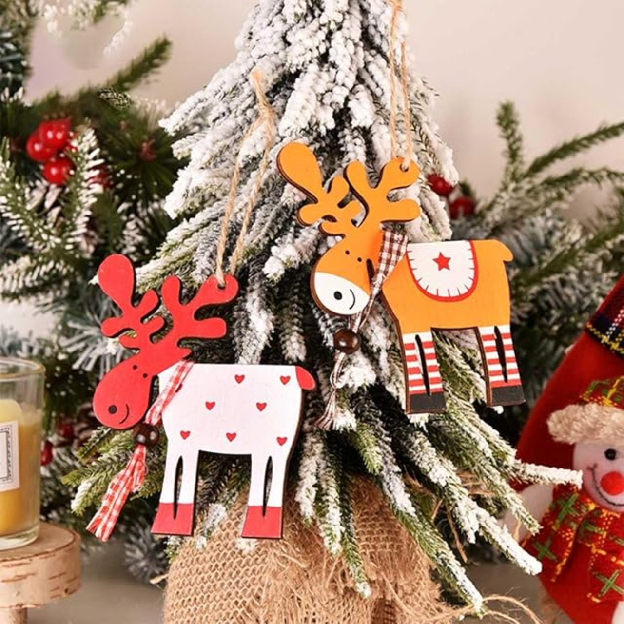 ⭐【 可愛いデザイン 】北欧風にデザインされた木製のオーナメントで、Xmasを幻想的な雰囲気に演出できます。