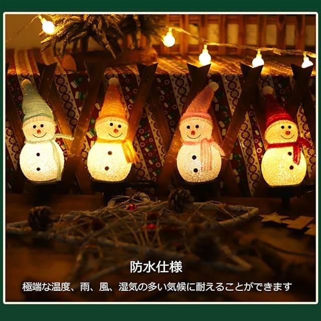 雪だるま クリスマスライト ソーラーライト ソーラーガーデンライト 置物ライト 4点入り LED 装飾ライト 屋外 埋込み式 夜間自動点灯 防水 庭飾り クリスマス 飾り christmas decorations outdoor(タイプA)