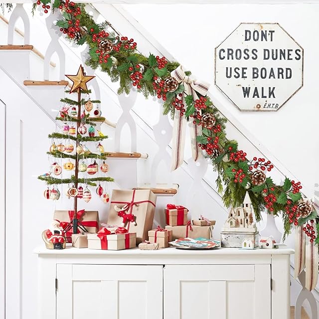 koundeneko クリスマス 造花 ガーランド レッドベリー 松ぼっくり付き 人工果実 赤い ベリー ガーランド 冬 インテリア オーナメント 暖炉 店舗 クリスマスツリー装飾 総長175cm