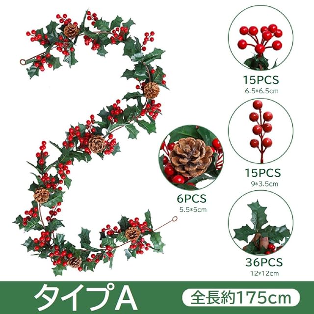 商品名:koundeneko クリスマス 造花 ガーランド レッドベリー 松ぼっくり付き 人工果実 赤い ベリー ガーランド 冬 インテリア オーナメント 暖炉 店舗 クリスマスツリー装飾 総長175cm