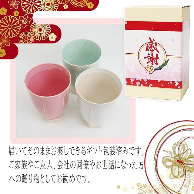 初任給 プレゼント 亀甲高台 フリーカップ 日本製 湯飲み 陶器 ピンク 箱入り カップ 熨斗付き 贈り物 ギフト包装済み コップ おしゃれ 初任給ギフト (TB-835)