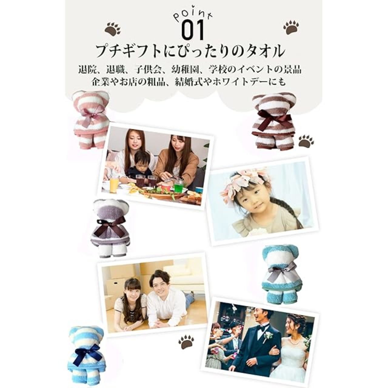 5個セット 5カラー×1 10個セット 5カラー×2 8個セット 4カラー×2 クマの形で広げるとハンドタオルになり かわいいのに実用的で大変喜ばれます! 退職、退院のお礼、粗品、プチギフト、ホワイトデー、結婚式のお礼の品として女性に人気です。 ハンドタオル(ハンカチ)のギフトですので男女問わず喜ばれます。 個包装してるためそのまま渡すことができます。