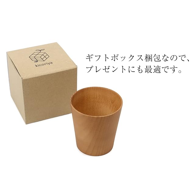 木目の美しさと温かみを感じるシンプルなデザインの木製コップです。 ギフトにも最適な箱に入れてお送りしますので、プレゼントにも適しています。 父の日、お誕生日にもいかがでしょうか?