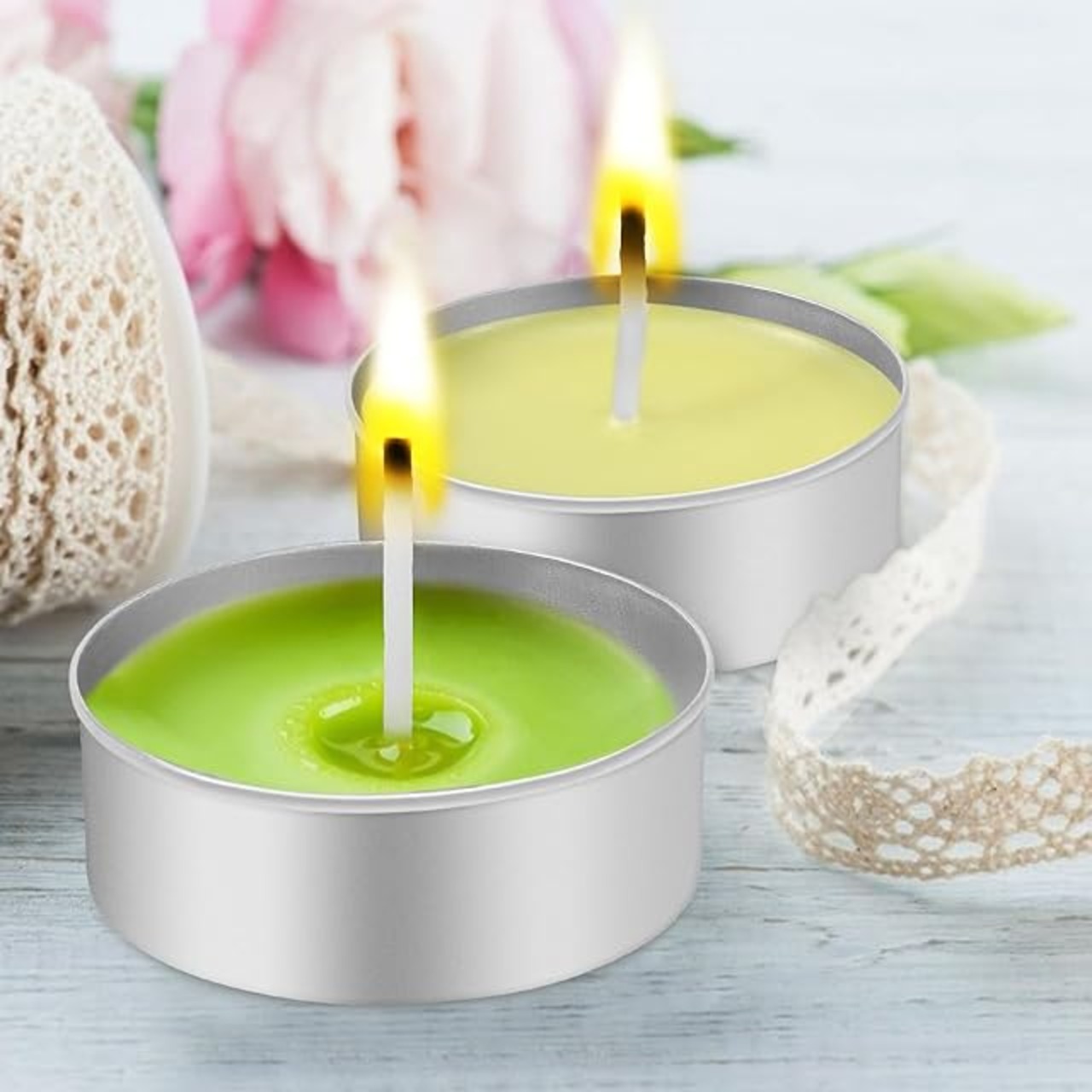 DIYキャンドル作成: このアルミ製ティーライトカップとキャンドル芯のセットは、自宅で簡単にオリジナルのキャンドルを作ることができ、創造性を発揮するのに最適です。