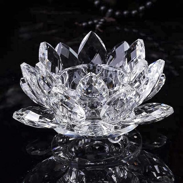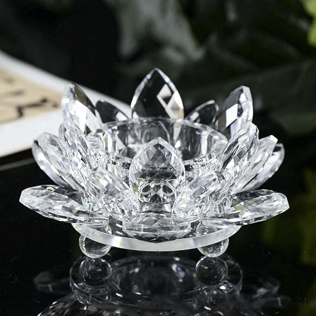 クリスタルガラス 蓮 ロータス クリスタル ローソク立て ガラス 置物 燭台 蝋燭立て 花 キャンドル ろうそく ランプ ホルダー 蓮の花 インテリア 輪灯 仏前 神具 誕生日 金運 癒し け 勝負 恋愛 幸運 飾り (クリア 1個)