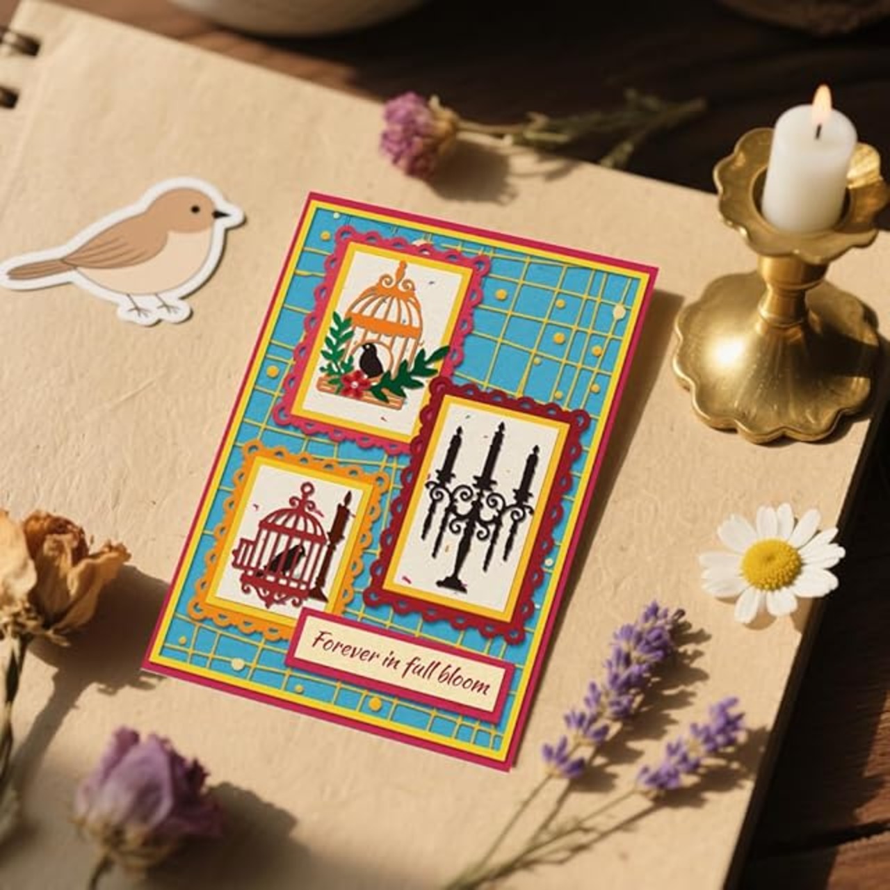 16 delicate bird cages and candle holder themed cutting dies are included. Create unique card holders to meet various decoration needs.