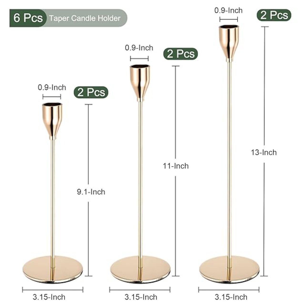 多目的 - キャンドルホルダーは家の装飾、レストラン、イベント、記念日、結婚式などさまざまなシーンで使用できます。ダイニングテーブル、棚、その他の平らな面に置かれることが多く、美しい焦点となり、ロマ ンチックな雰囲気を作り出します。<br /><br />得られるもの - パッケージには、サイズごとに6個(各サイズ2個)のキャンドルホルダーが付属しています。S: 80 x 230 mm、M: 80 x 280 mm、L: 80 x 330 mm。直径が19 mmのすべての標準キャンドルに適合します。<br /><br />信頼できる素材 - キャンドルホルダーは表面に電気メッキが施された鉄製で、頑丈で耐久性があり、長持ちし、錆びにくいです。<br /><br />特別なデザイン - さらに、花、緑、装飾品などの他の装飾要素と組み合わせて、視覚的な魅力を高め、空間全体のスタイルを引き立てることができます。<br /><br />ご注意 - キャンドルホルダーにキャンドルを点火するときは、カーテン、紙、その他の装飾品などの可燃物から離れた安全で安定した場所にキャンドルを置くようにしてください。