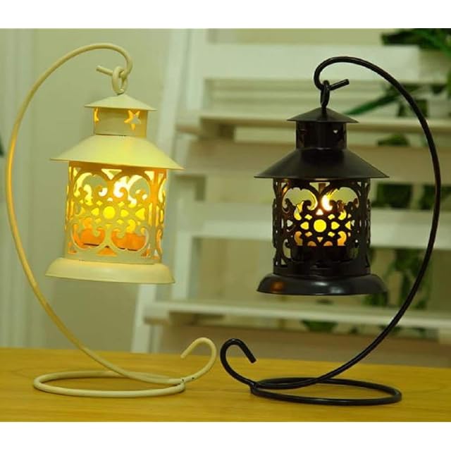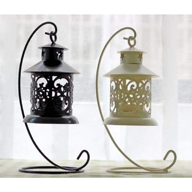 【southanhop】 北欧 アンティーク キャンドルホルダー レトロ 吊り方 ランタン インテリア にも (ブラック:黒)