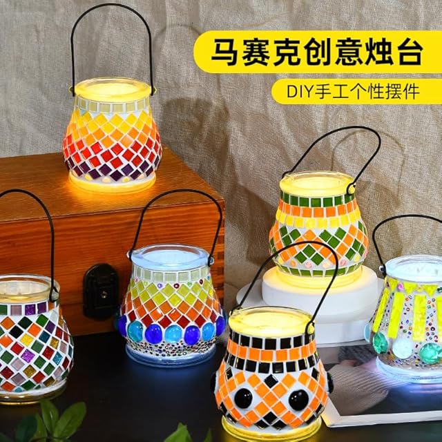 セット内容】グラスキャンドルホルダーキット、 モザイクタイル、ガラス容器、スポンジ、ブラシ、ボウル、へら、クリーム接着剤、グラウト、ビニール手袋 日本語説明書付