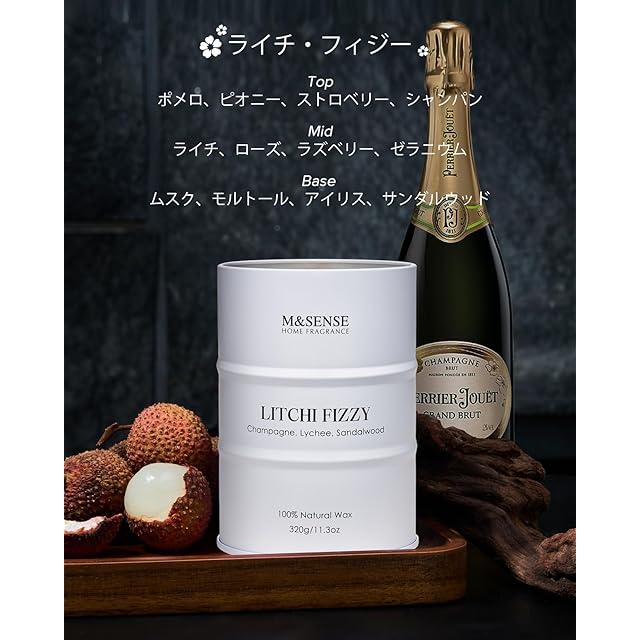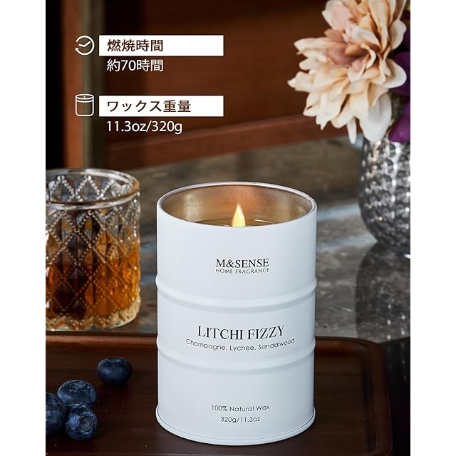 商品名:M&SENSE アロマキャンドル 人気 ライチフィジーの香り 大型 320g 70時間 おしゃれ ソイキャンドル 癒しグッズ ホワイトデー バレンタイン 母の日 ギフト 女性向け プレゼント